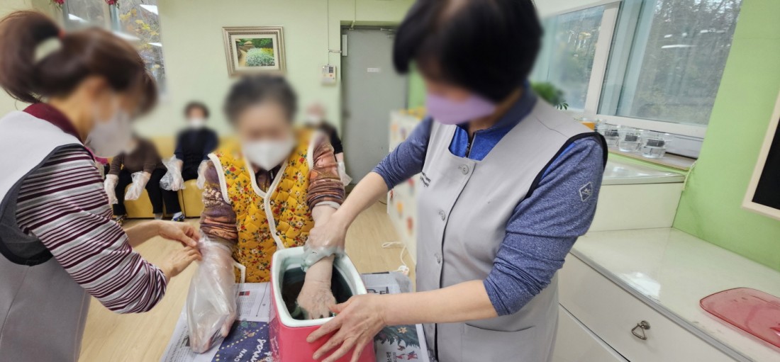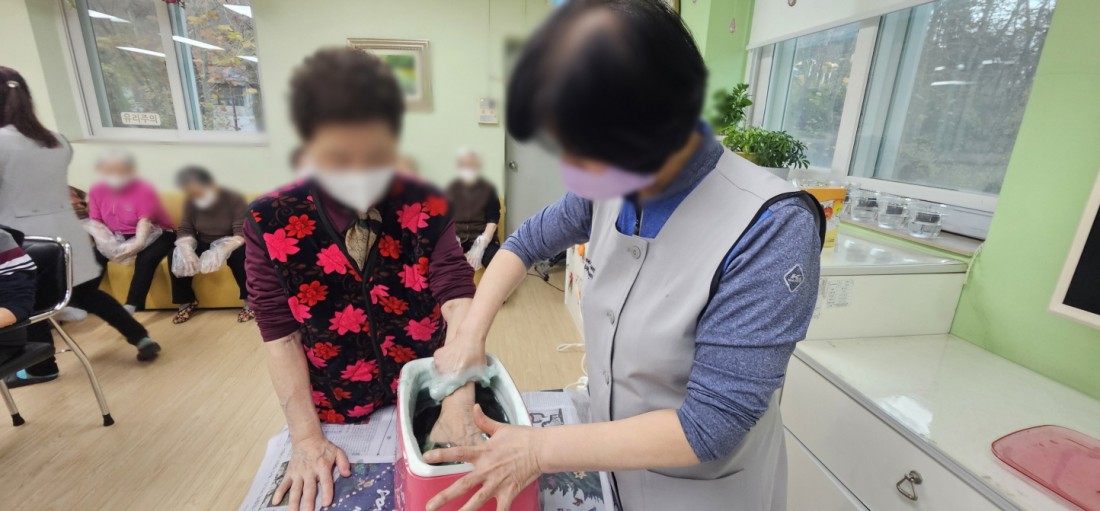 잠깐이지만 어르신들 손이 **'꿀 피부'**가 되는 마법!