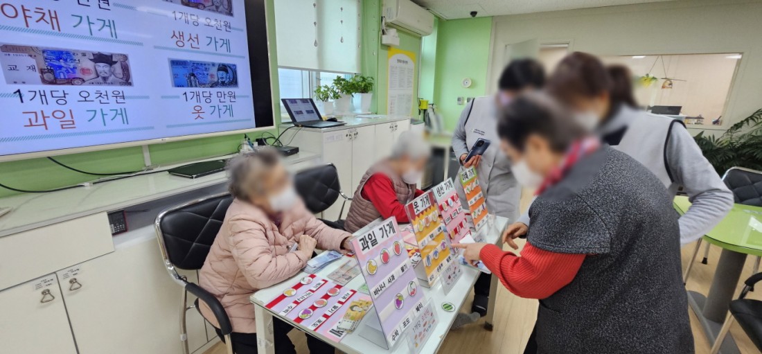 각 가게마다 가격표가 붙고, 교육용 지폐와 시장 소리 효과음까지 더해지니