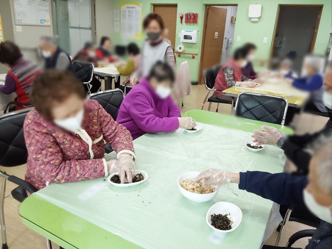 어르신들은 서로 주먹밥을 나눠 드시며 훈훈한 정을 나누셨고,