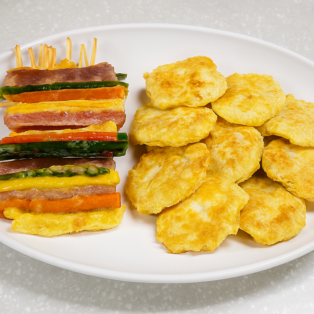 동태전은 노릇하고 부드럽게, 쪽파와버섯, 단무지 등 다양한 재료로 만든 산적꼬지는 향긋하고 고소한 풍미를 자랑합니다.