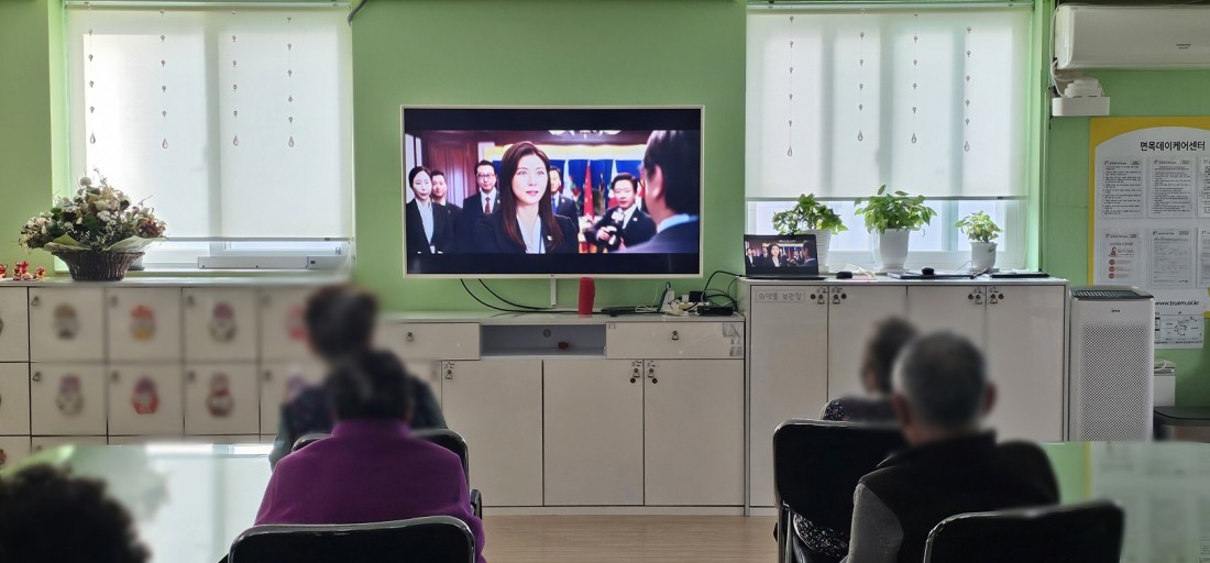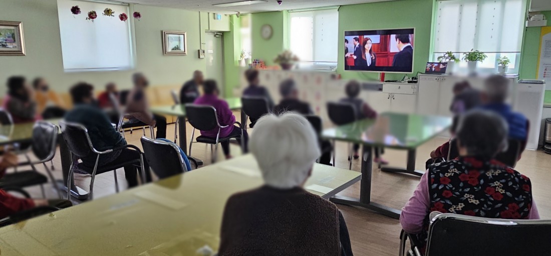 영화를 보는 동안, 어르신들 사이에는 자연스러운 대화와 웃음이 오갔습니다.