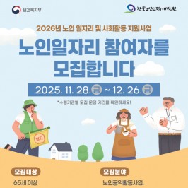 2026년 노인사회활동지원사업 참여자를 모집합니다!
