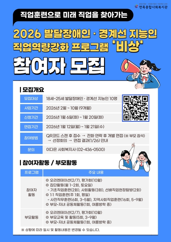 2026년 발달장애인 및 경계선 지능인 직업역량강화 프로그램 '비상' 참여자 모집