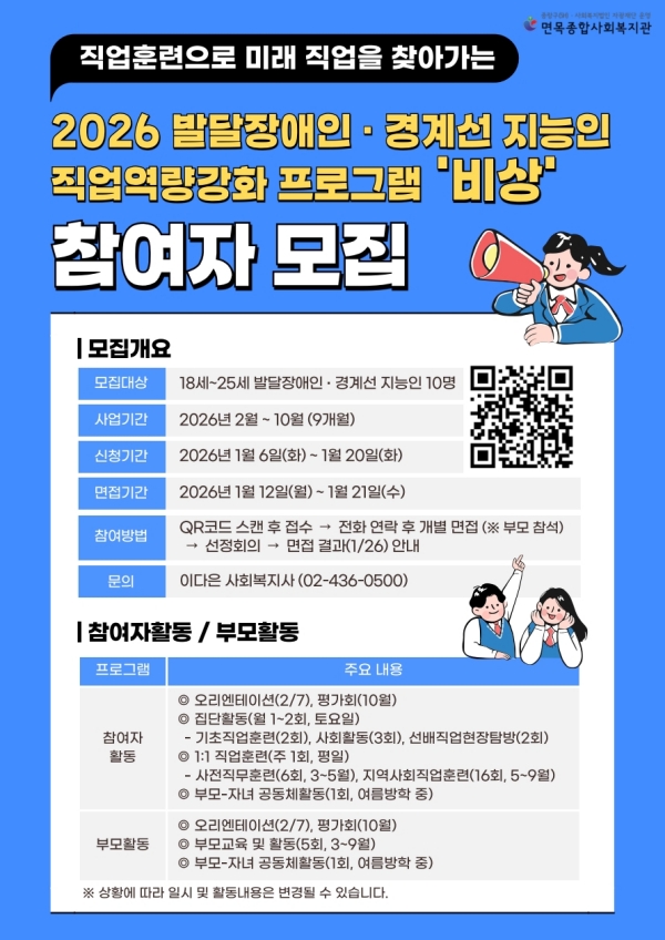 2026년 발달장애인 및 경계선 지능인 직업역량강화 프로그램 '비상' 참여자 모집