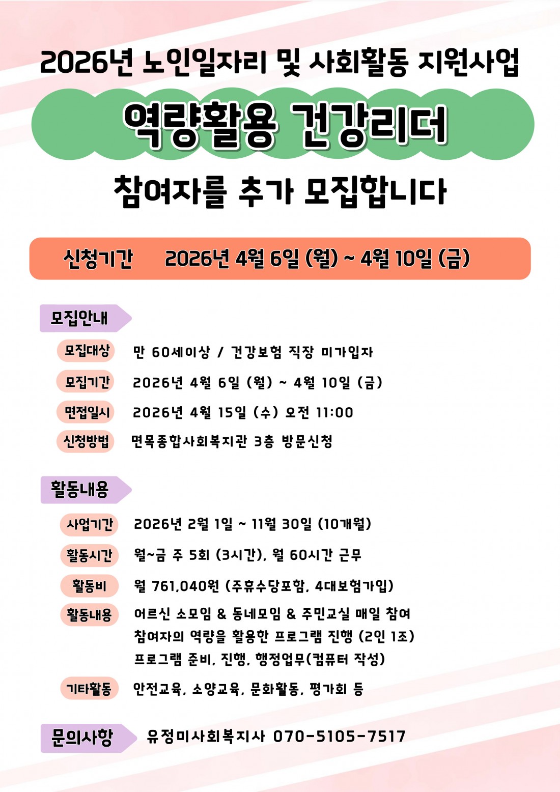 2026년 노인역량활용사업 건강리더 참여자를 추가모집합니다