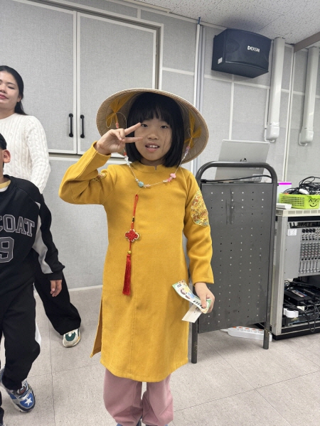 그리고 직접 준비해주신 전통의상 '아오자이'를 입고, 모자 '논라'를 착용해 보는 시간을 통해 베트남 문화를 체험해 보았어요!