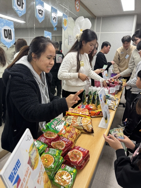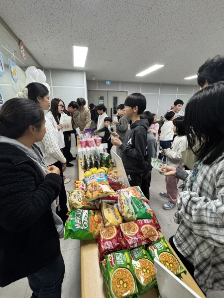 필리핀, 베트남, 한국의 라면, 과자, 과일 등 다양한 간식이 가득했어요!