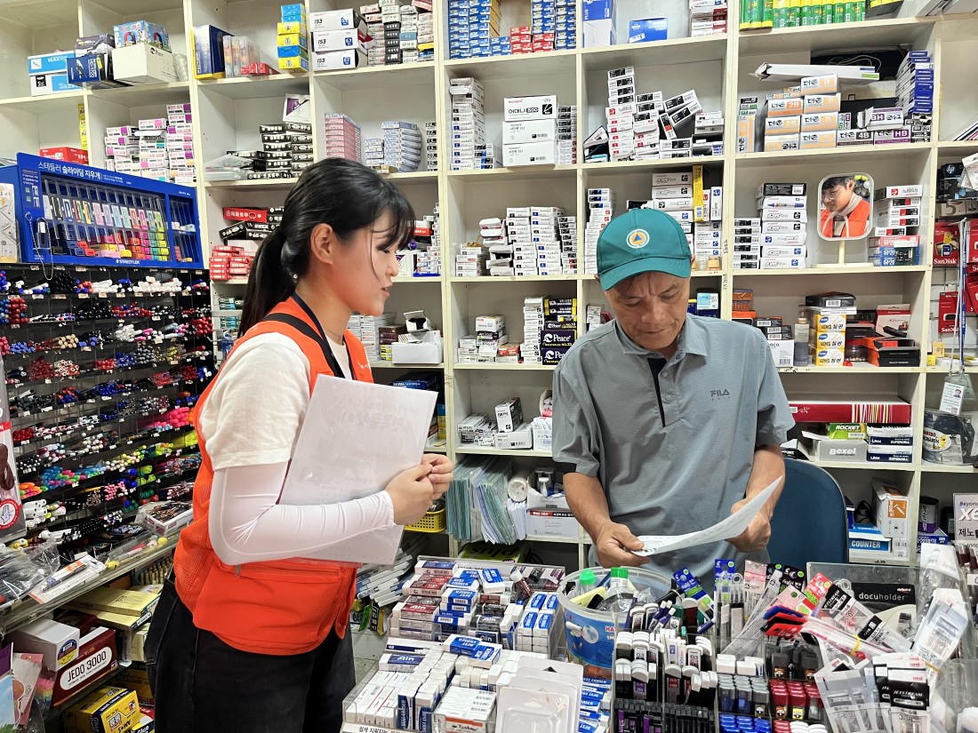 용용떡볶이, 한우리문구, 금천이발소, 해늘당 등등 이음가게에 방문하여 캠페인 취지를 전해드리자,