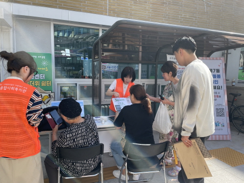 이번에도 면목7동 주민센터에서 적극 협조해주셔서 명당 자리에서 캠페인을 진행합니다.