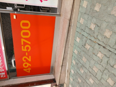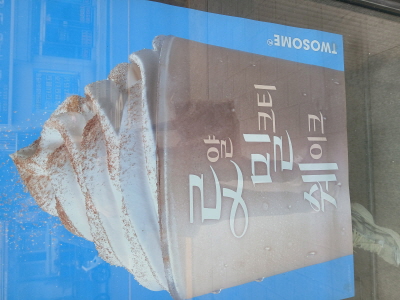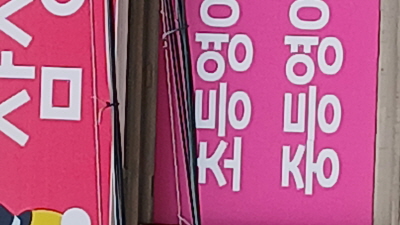 "저기 간판 봐~ 핑크색이네. 확대해서 한번 찍어볼까?"