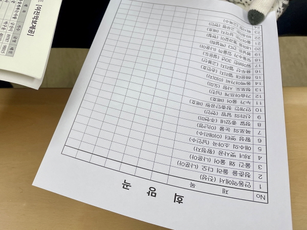 그런데 잠시 후! 정무진 사장님이 오셔서 가방에서 종이뭉치를 꺼내 한 장씩 돌립니다!