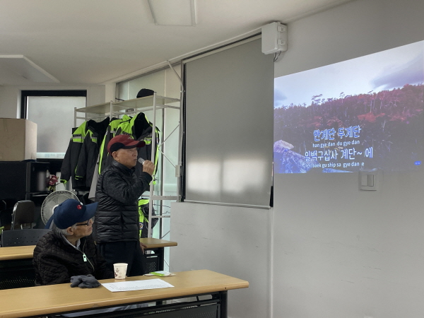 함께 노래를 부르며 박자를 맞추고 가사를 알려주십니다.