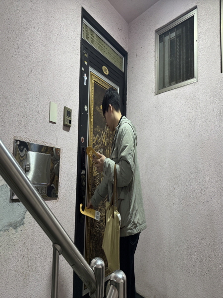직접 동네 골목과 상가, 주택가를 찾아가 '문고리 홍보'를 진행하고 있습니다.