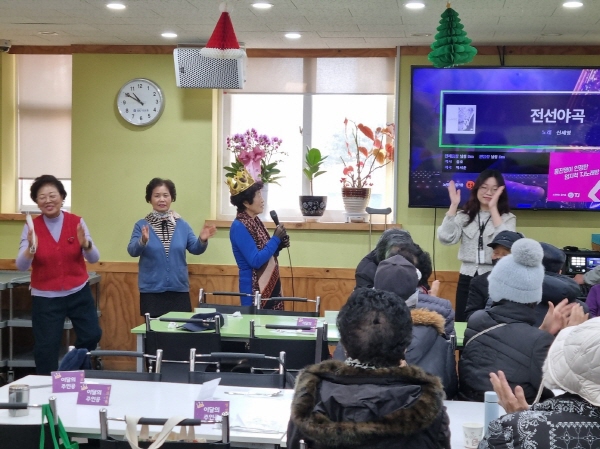 오랫동안 노래교실도 다니시고 경로식당 배식봉사도 도와주시는 어머님들의 코러스, 흥겨운 춤 덕분에 한껏 더 신나는 분위기가 만들어집니다.