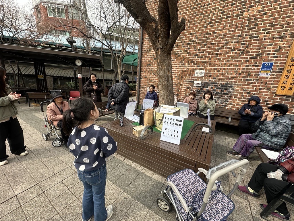 활동 중에 갑자기 공원에서 놀고 있던 한 아이가 자연스럽게 다가와 어르신들 앞에서 재롱잔치를 부리기 시작했습니다 ㅎㅎ