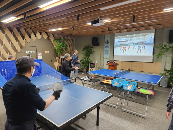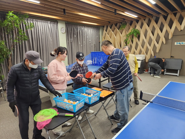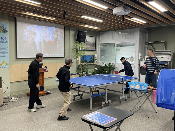 탁구를 처음 쳐보는 이웃들에게 기꺼이 선생님이 되어주셨습니다.