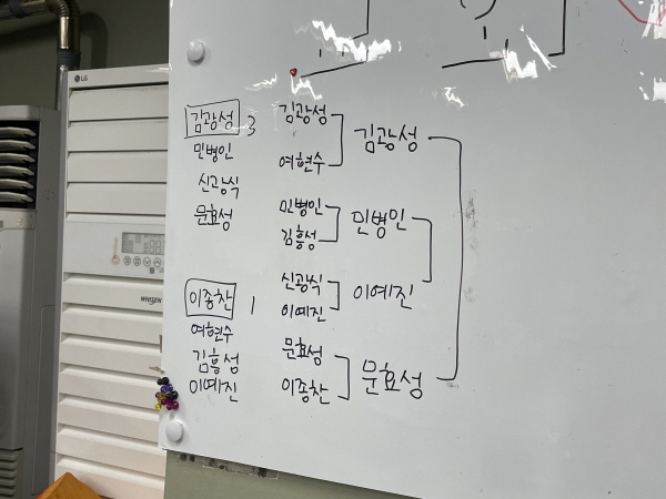 하루는 개인연습 후 모인 인원끼리 토너먼트 경기도 진행해보았습니다.