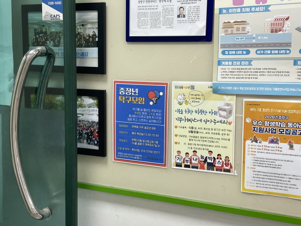 주민센터에도 협조를 구해 게시판에 홍보지도 붙였습니다.