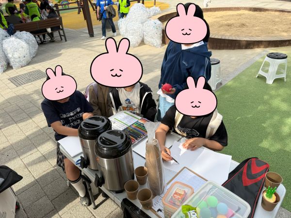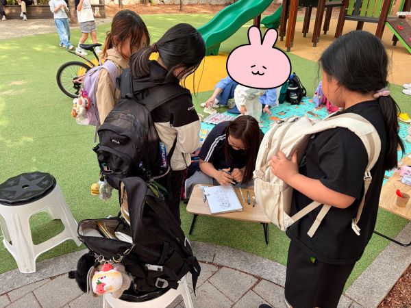 어느새 나눔 동아리 옆에서 3명의 친구가 함께 그림을 그리고 있었습니다.